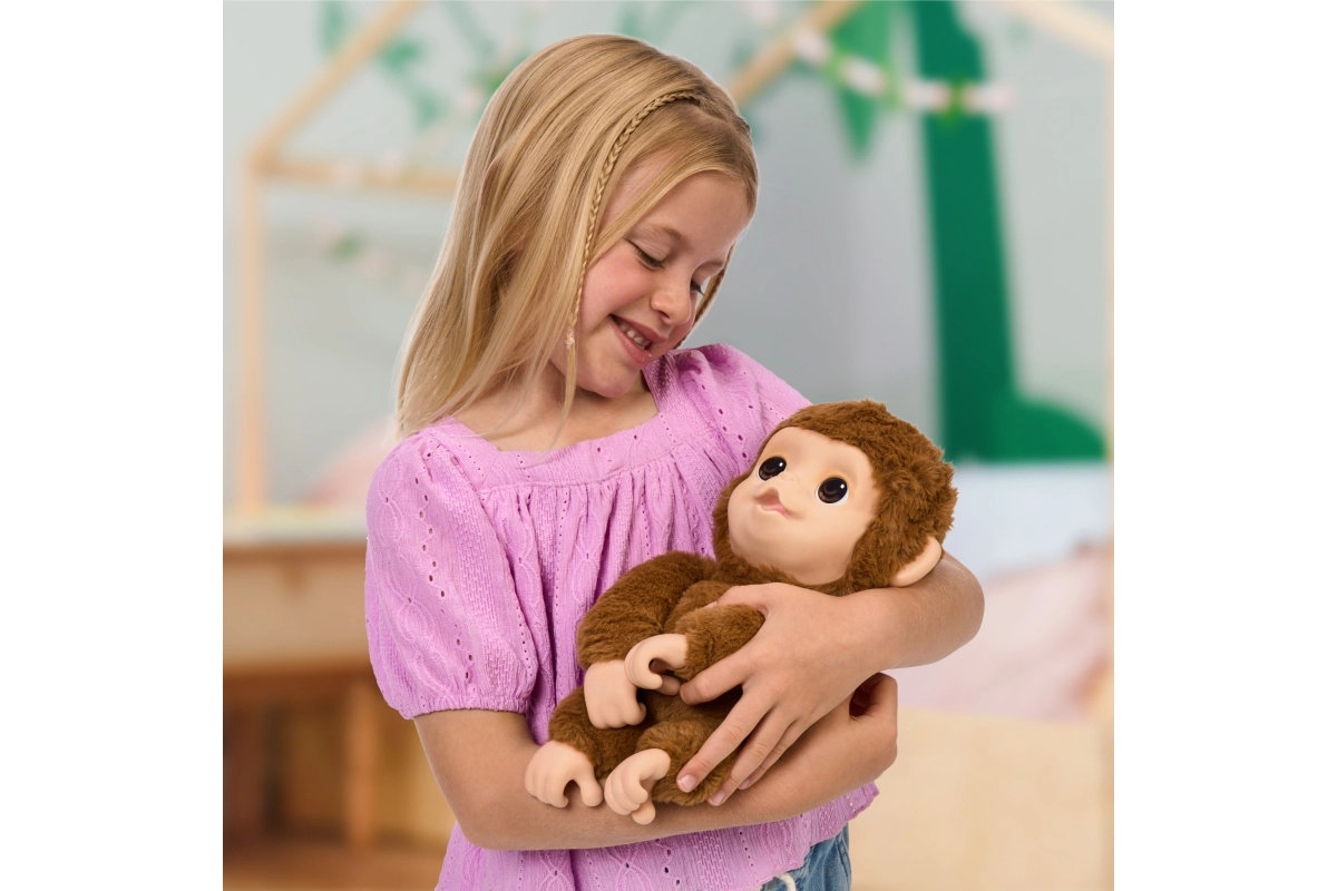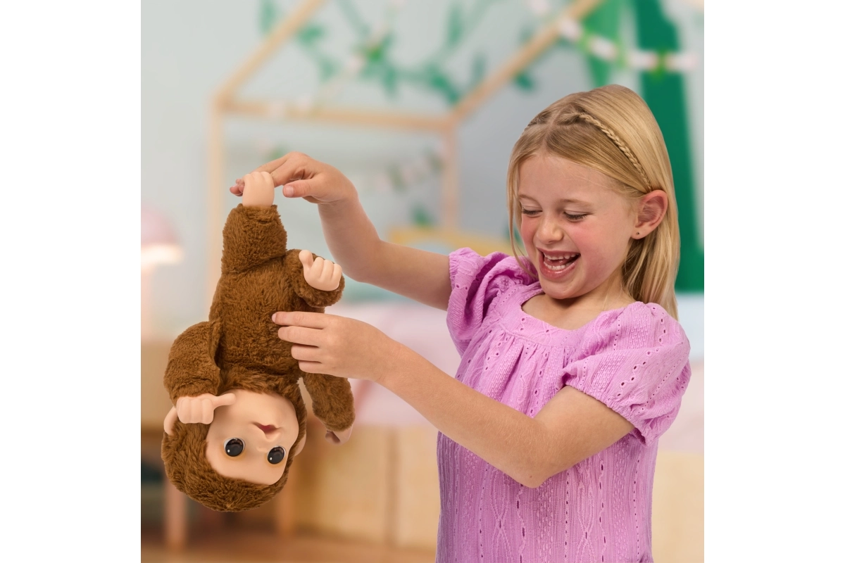 Pliušinis kūnelis ir išraiškingas veidukas kviečia glėbesčiuotis. Beždžioniukas moka kabėti žemyn galva ir linksminti vaikus tiek aktyviuose, tiek ramiuose žaidimuose.