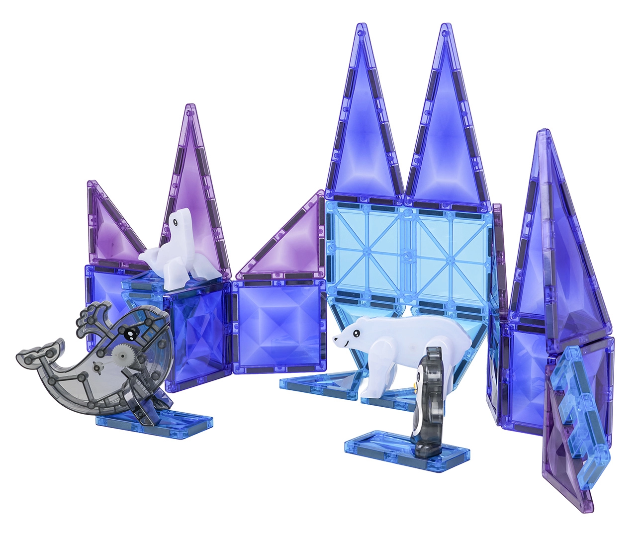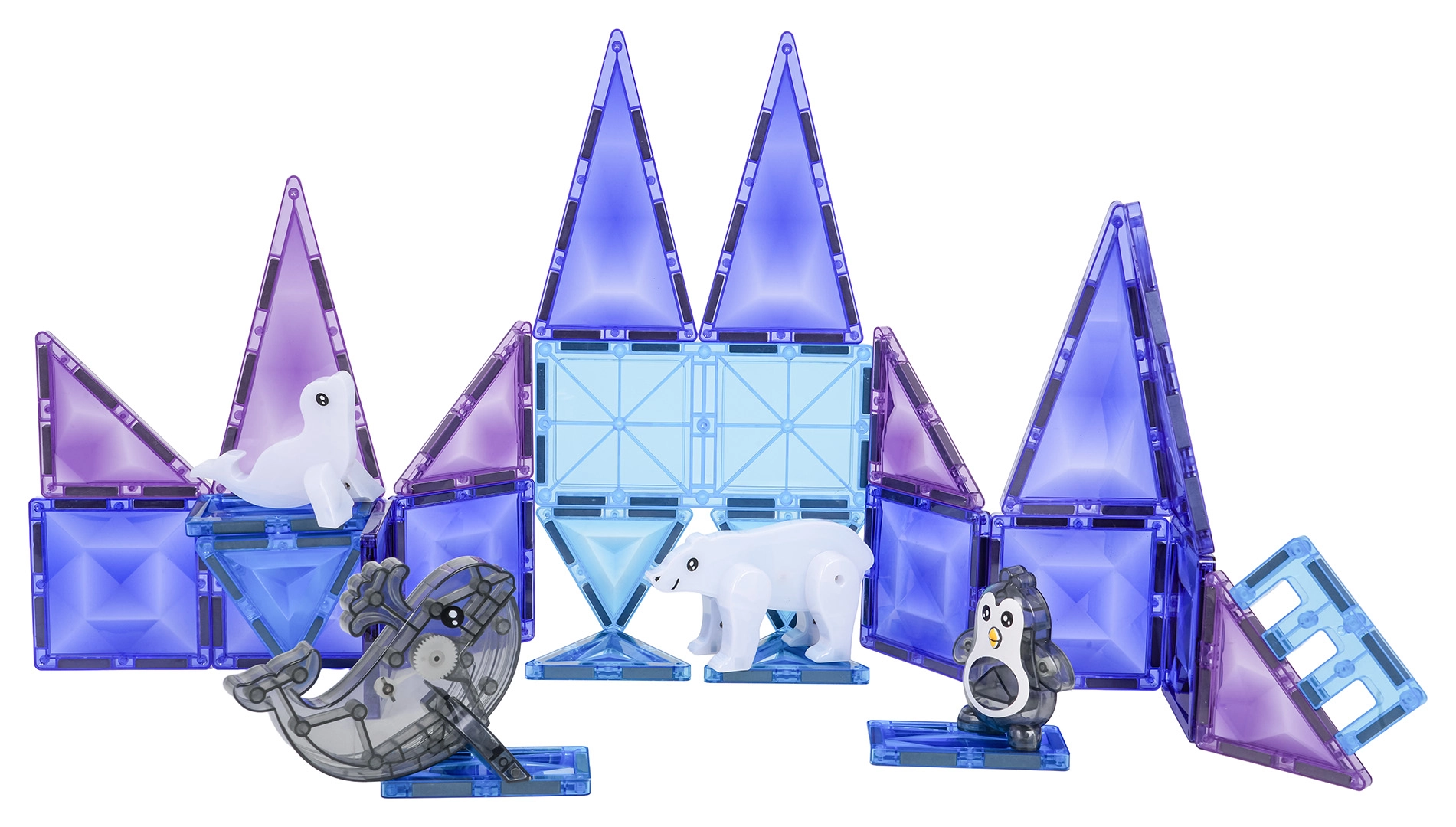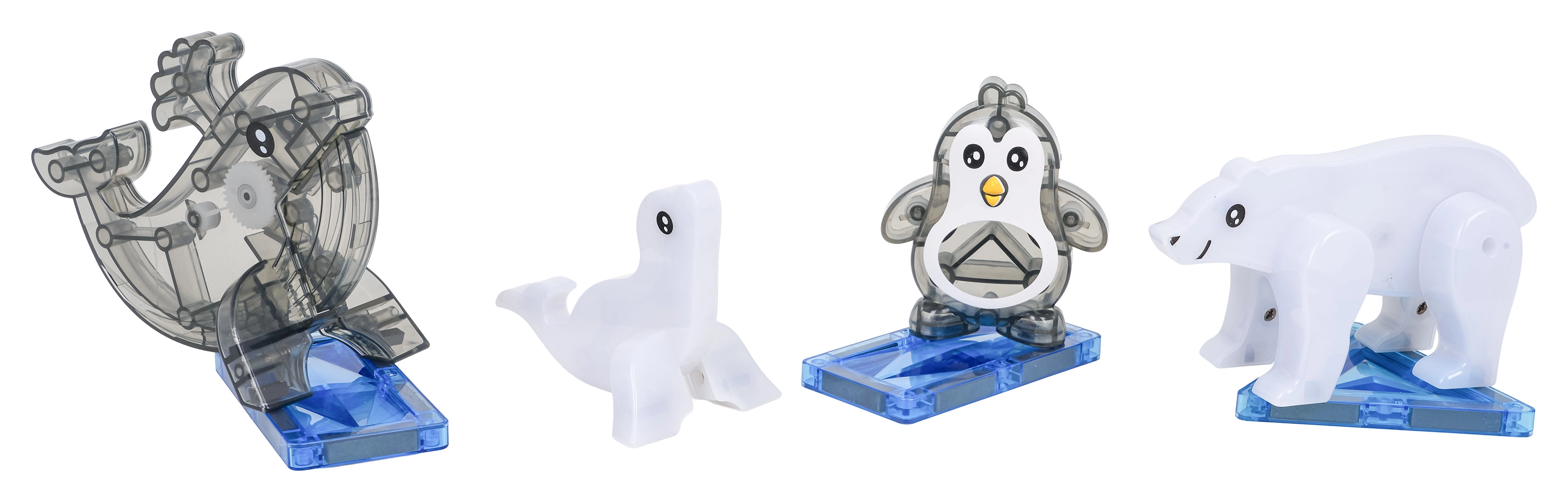 Figūrėlės turi judančius elementus (delfinas atveria nasrus, lokys judina kojas, pingvinas kelia ir nuleidžia pelekus), kas skatina vaizduotės kupinas istorijas ir smulkiąją motoriką. Detales galima jungti įvairiais kampais ir kurti beribes statinių variacijas – nuo paprastų formų iki sudėtingų 3D modelių.