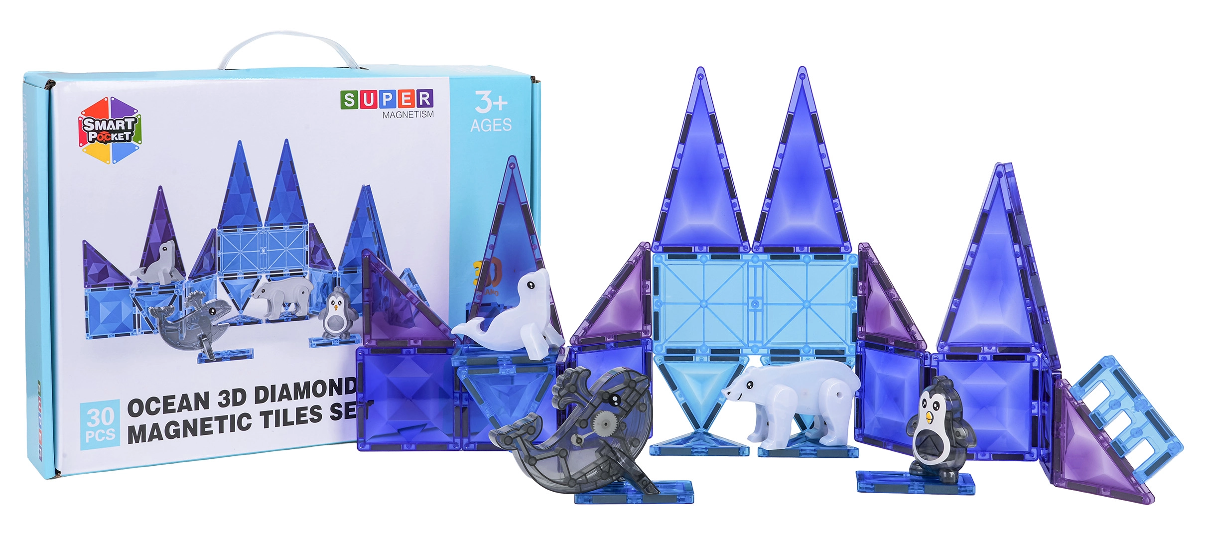 Magnetinė konstravimo dėlionė Ice Snow sukurta vaikams nuo 3 metų. Pusransparnės detalės vėsiais atspalviais susijungia į bokštus, sienas ir ledo rūmus, o magnetiniai sujungimai išlaiko formą ir suteikia konstrukcijoms stabilumo. Rinkinyje taip pat yra mielos figūrėlės – ruonis, pingvinas, delfinas ir baltasis lokys – jos pagyvina kiekvieną žaidimą.