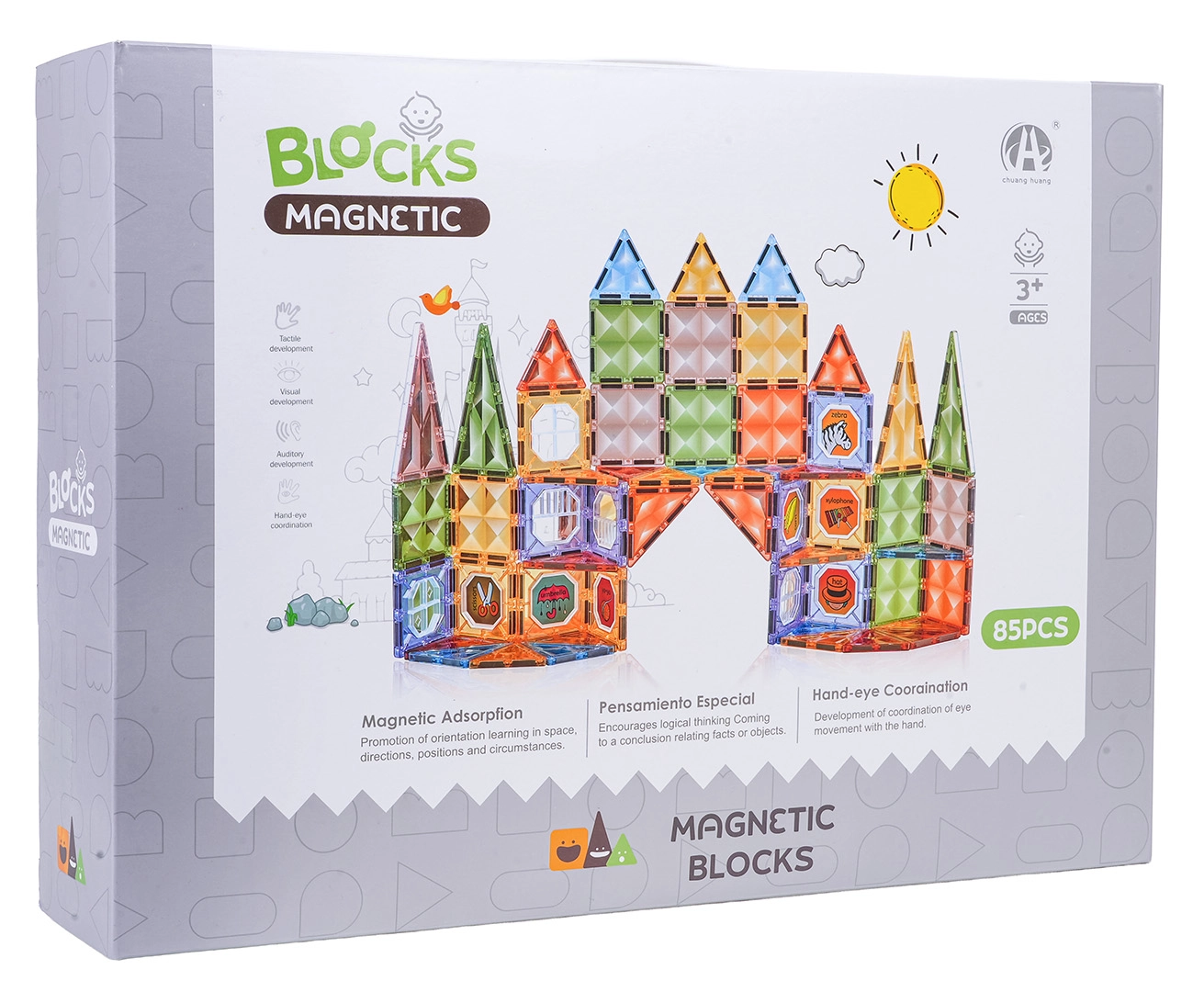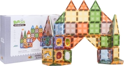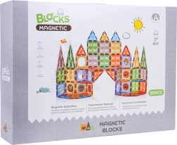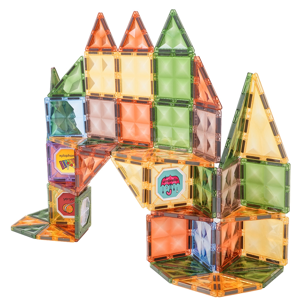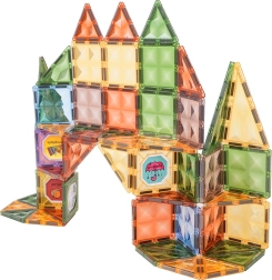 Šis gausiai sukomplektuotas magnetinių kaladėlių rinkinys siūlo permatomus spalvotus kvadratus ir trikampius, kurie saugiai jungiasi per kraštines. Vaikai gali kurti pilis, arkas ir geometrinius statinius, kartu lavindami smulkiąją motoriką bei susikaupimą. Dalys pagamintos iš kokybiško, patvaraus plastiko, o magnetai užtikrina tvirtą sujungimą įvairiais kampais.
