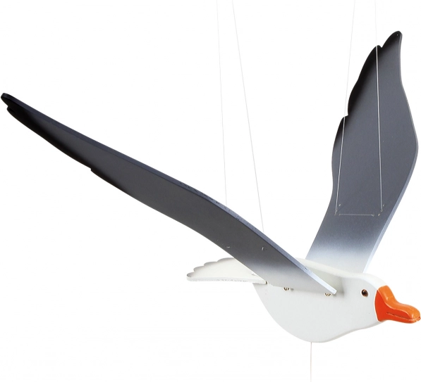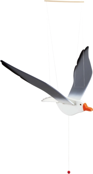 Patraukus už virvelės su karoliuku, jos sparnai ima judėti ir imituoja žuvėdros skrydį.