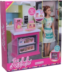 - Lėlė su virtuvės rinkiniu