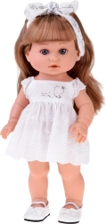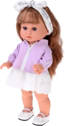Atraskite mielą 38 cm ūgio lėlę su ilgais plaukais, kuri sužavės mažąsias kirpėjas ir mados mylėtojus. Ji turi realistiškus bruožus, ilgų rudų šukuojamų plaukų, judrias galūnes ir vilki baltą nėriniuotą suknelę su alyvinės spalvos striukyte. Rinkinyje yra plaukų šepetys begaliniams šukuosenų eksperimentams ir kūrybiškam žaidimui.