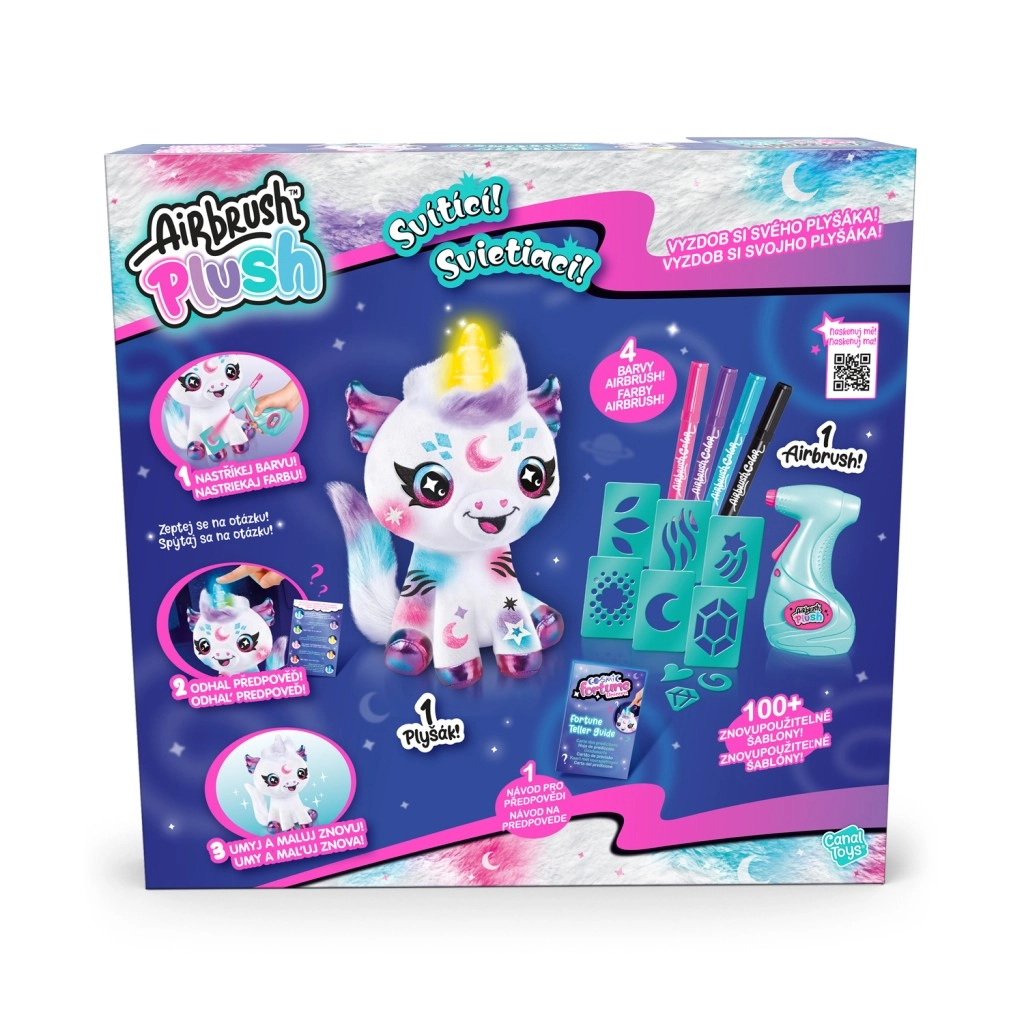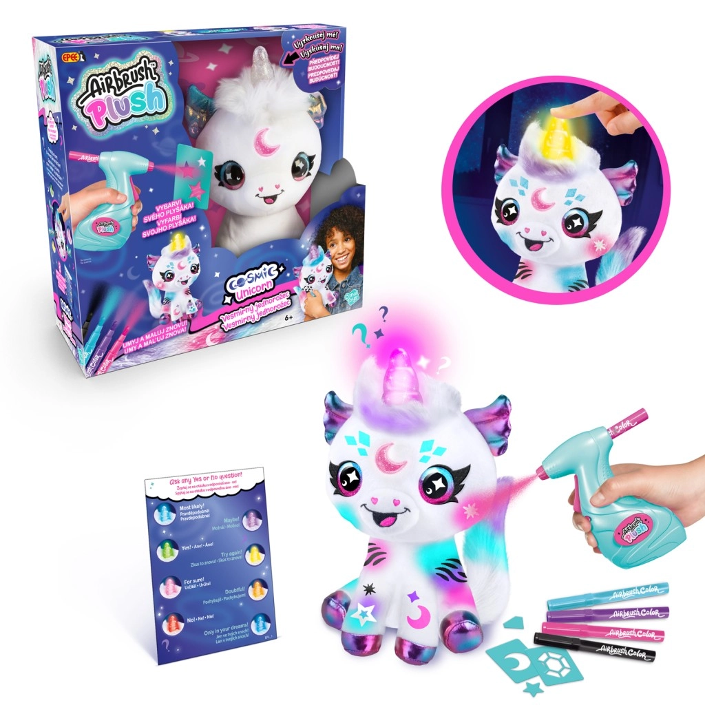 Lavink fantaziją ir smulkiąją motoriką su kūrybiniu rinkiniu, kuris pavers kiekvieną popietę spalvingu nuotykiu. Naudodamas airbrush gali lengvai papurkšti pliušinį vienaragį, derinti įvairias spalvas ir šablonus bei sukurti originalius kosminius raštus. Kai dizainas atsibosta, užtenka jį nuplauti vandeniu ir pradėti iš naujo.