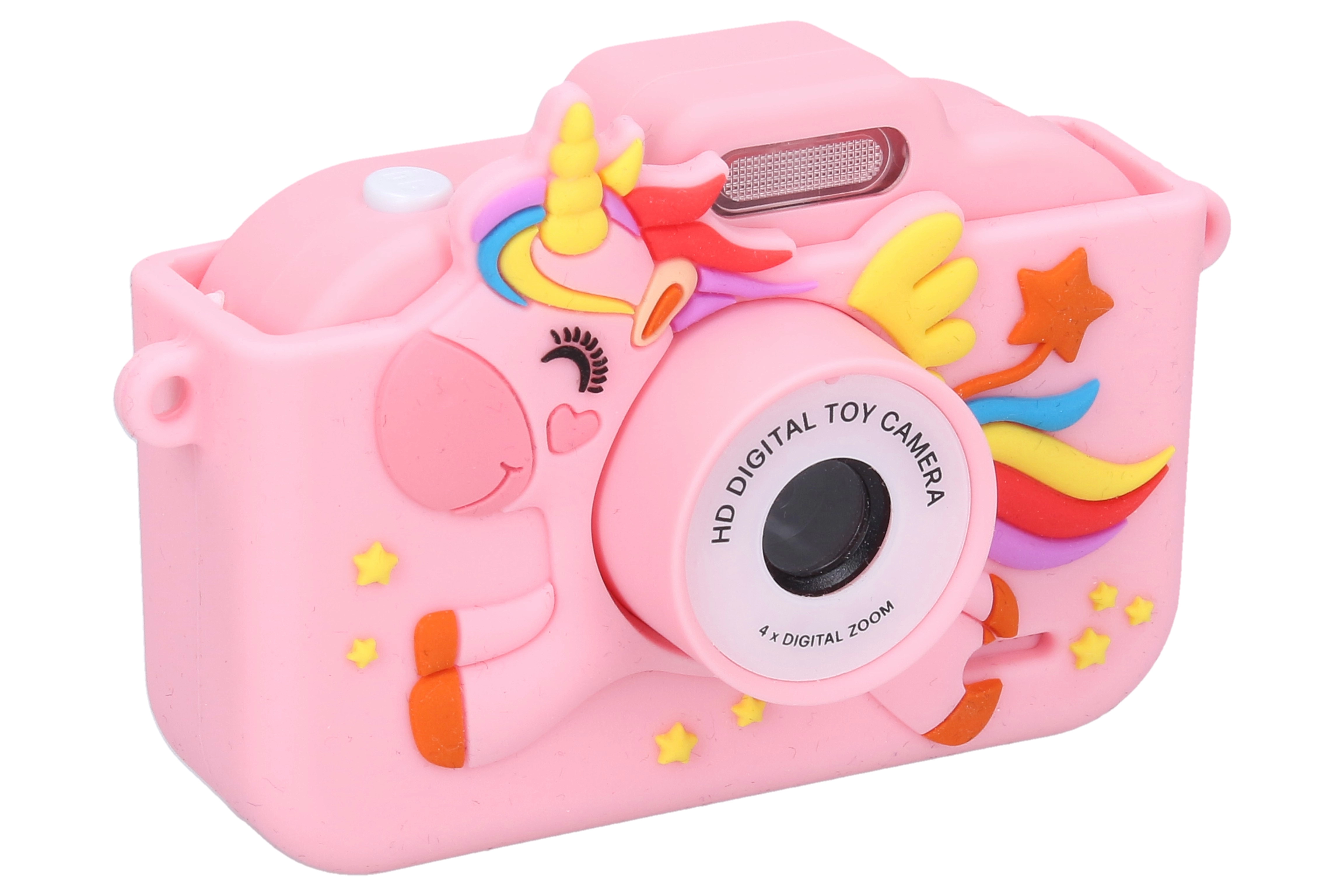 Fotoaparatas turi aiškų 2,0" ekraną, paprastą valdymą ir platų pramogų rinkinį: 10/5/2 s laikmatį, įvairius rėmelius, filtrus ir juokingas animacijas, iškraipymo efektus, netgi integruotus žaidimus ir MP3 grotuvą. Patvarus silikoninis dėklas su vienaragio motyvu saugo įrenginį kasdien naudojant.