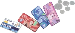 Rinkinyje yra monetų, banknotų ir mokėjimo kortelė, su kuriais vaikai išbandys grynųjų ir bekontakčius atsiskaitymus.