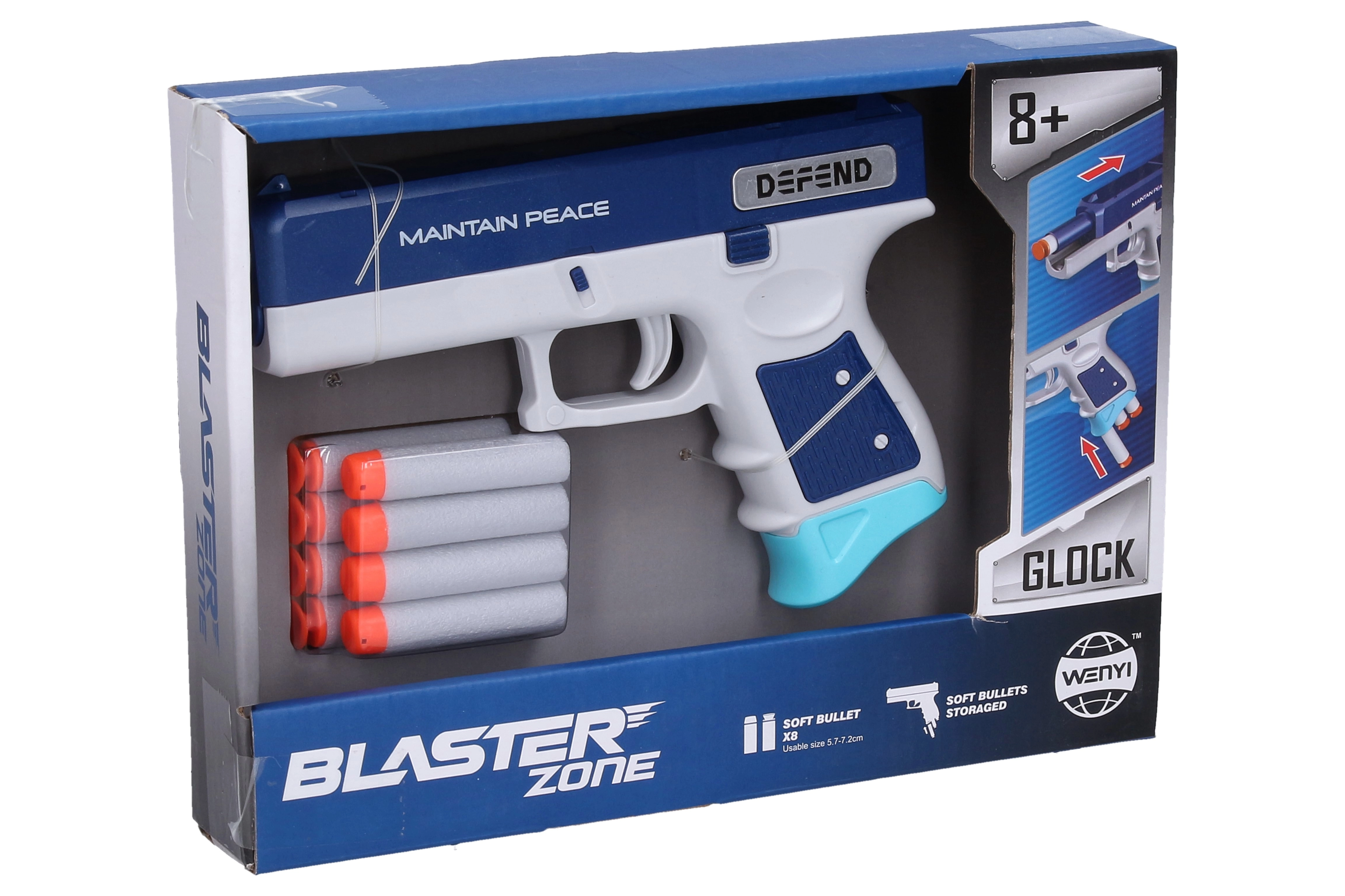 Linksmus vaikų žaidimus namuose ir lauke užtikrinantis pistoletas su putų šoviniais suteikia saugią, dinamišką pramogą. Rinkinyje iš viso yra 8 šoviniai, įskaitant 4 su siurbtuku taikinei. Paprastas užtaisymas, lengvas valdymas ir kompaktiški matmenys daro šį pistoletą puikiu pasirinkimu mažiesiems šauliams. Lengva konstrukcija, saugūs putų šoviniai ir greitas paruošimas šaudymui garantuoja begalinį smagumą.