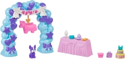 - 2 mini lėlės (Polly ir Shani), šuniuko figūrėlė, balionų arka su piniata, dovanos, vakarėlio stalas ir įvairūs priedai