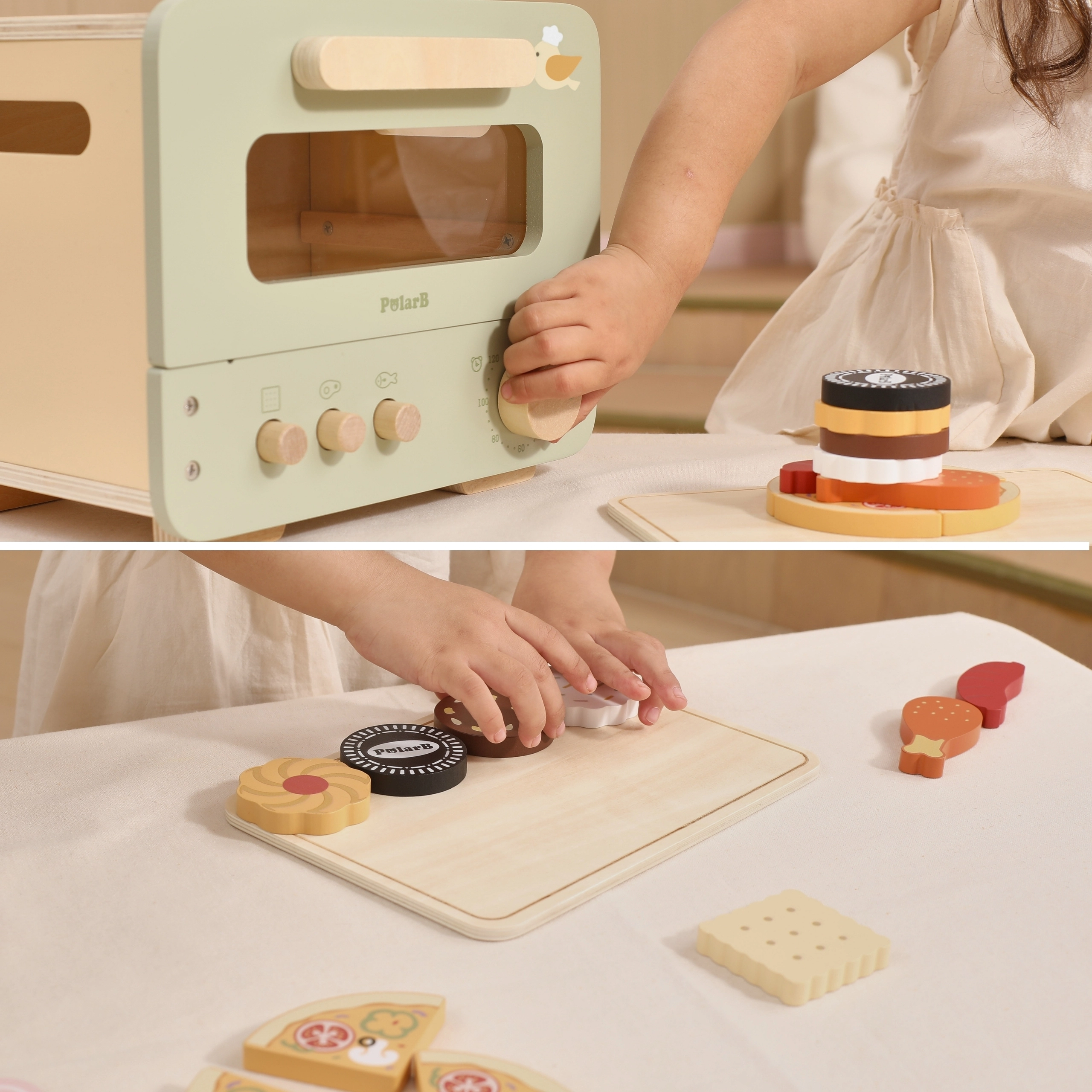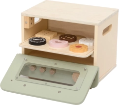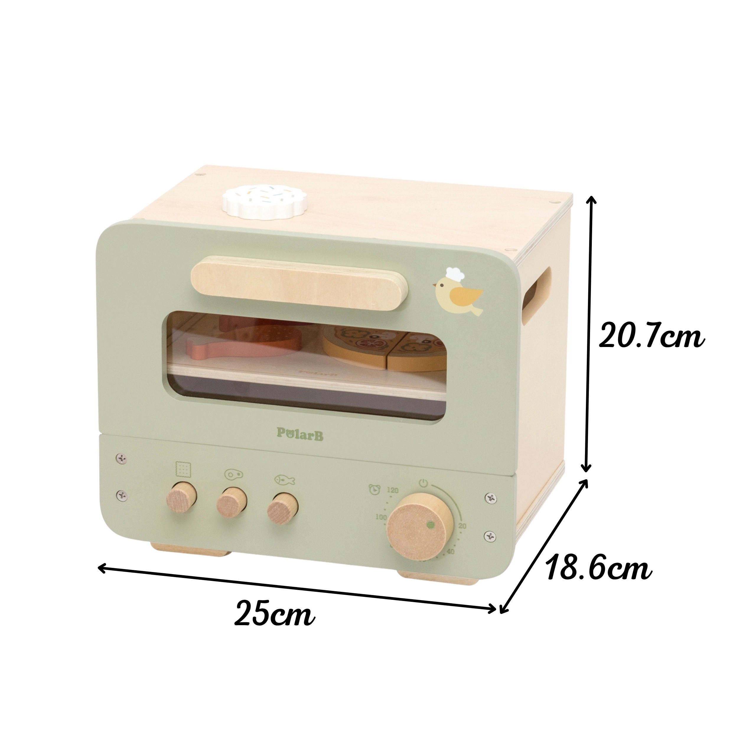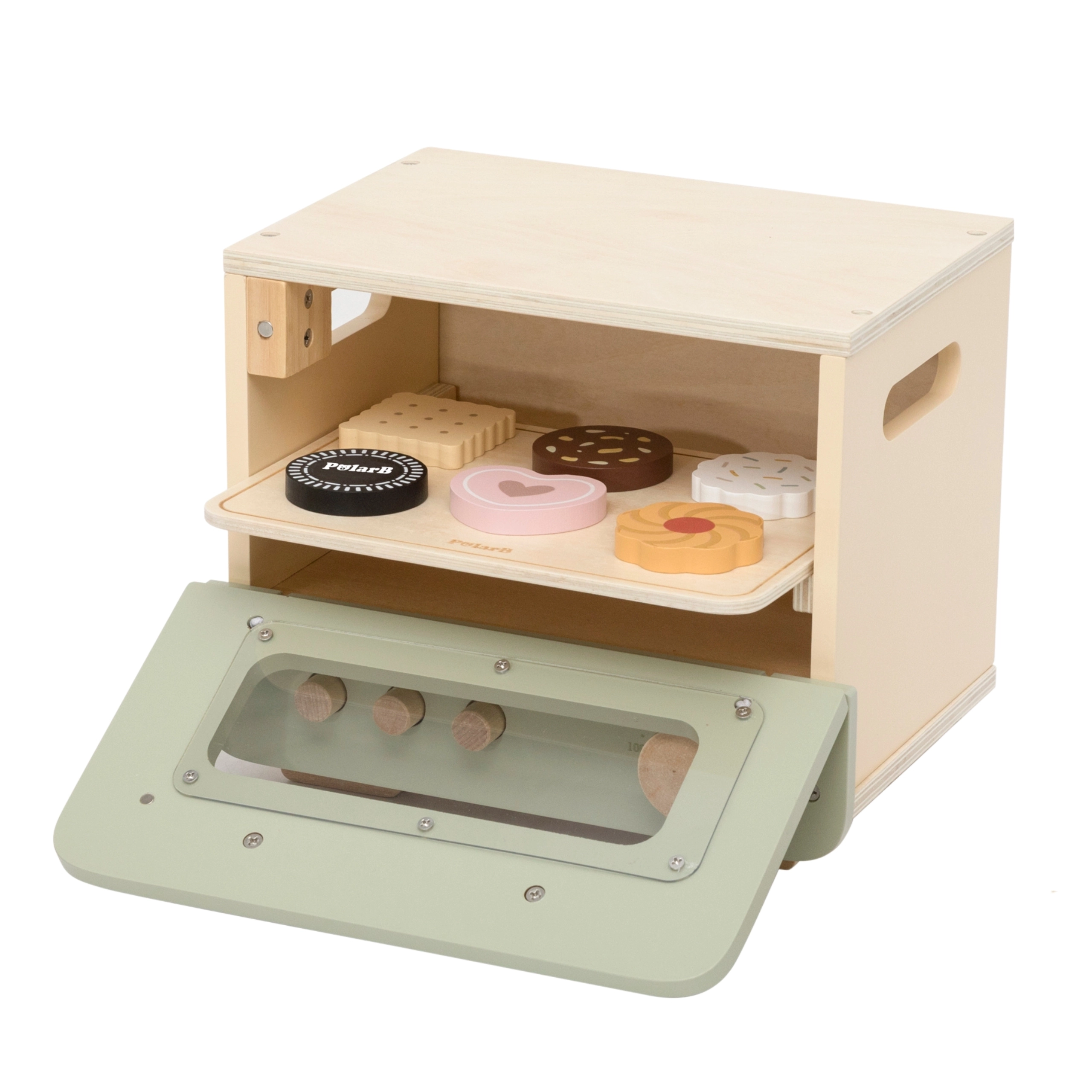 Ši stilinga vaikų orkaitė žaliai smėlinės spalvos derinio suteikia autentišką kepimo patirtį. Permatomas langelis, funkcionalūs mygtukai ir nuimama skarda kviečia kūrybiškai patiekti saldžius ir sūrius gardėsius. Vaikai gali pjaustyti ir dėlioti mini picą, kepti sausainius bei lavinti miklumą ir bendravimą vaidmenų žaidimuose.