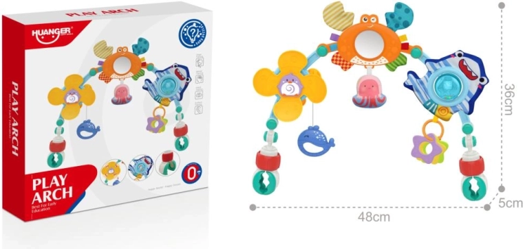 Šis universalus jūrinio motyvo žaislų lankas lengvai tvirtinamas prie lovelės arba vežimėlio ir suteikia kūdikiui įvairią stimuliaciją. Jis apjungia skirtingas tekstūras, formas ir funkcijas – nuo vėtrakelio ir veidrodėlio iki kramtukų ir barškučio – kurios skatina natūralų smalsumą ir akių–rankų koordinaciją.
