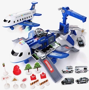 Didelis išskleidžiamas policijos lėktuvas virsta žaidimų stovėjimo aikštele su kranu, šviesomis ir garsais. Rinkinyje yra 4 metaliniai automobiliai, kurie skatina vaizduotę ir veiksmo žaidimus. Puiki dovana mažiesiems policijos ir technikos gerbėjams.