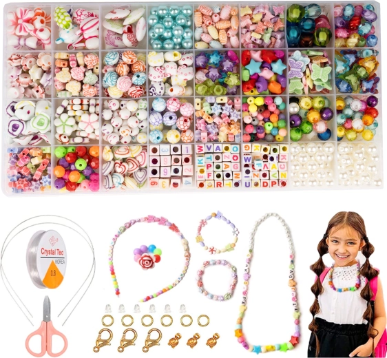 Atraskite smagų užsiėmimą ir kūrybiškumo lavinimą su šiuo papuošalų gamybos rinkiniu. Jame yra 32 rūšių spalvotų karoliukų ir skaidrus valas lengvam verimui. Idealu vaikams nuo 6 metų, skatina smulkiąją motoriką, fantaziją ir kūrybiškumą.
