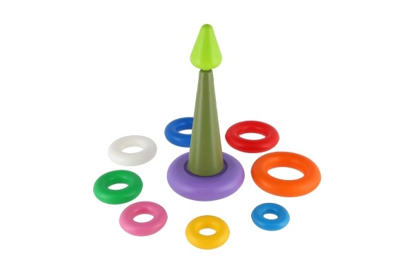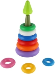 Kiekvienas žiedas yra vis kitos spalvos, todėl padeda atpažinti spalvas ir skirti dydžius. Ryškios spalvos traukia vaikų dėmesį, o piramidę bus smagu dėlioti ir išardyti vėl ir vėl.