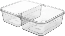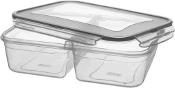 Skaidrus dizainas leidžia greitai patikrinti turinį neatidarant. Tvirta konstrukcija ir silikoninė tarpinė dangtyje užtikrina, kad padažai ar sultys neištekės. Dvi atskiros sekcijos idealiai tinka salotoms ir garnyrui, vaisiams ir užkandžiui arba pietums į darbą ar mokyklą.