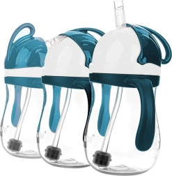 Šis 280 ml stebuklingas buteliukas sukurtas patogiam ir savarankiškam gėrimui vaikams nuo 9 mėnesių. Silikoninis šiaudelis su svareliu seka skystį net pakreipus ar apvertus buteliuką, todėl vaikas lengvai išgers visą gėrimą. Sandarus uždarymas sumažina pratekėjimo riziką ir kartu saugo šiaudelį nuo užteršimo.
