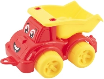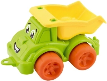 Lengva, bet patvari plastikinė konstrukcija tinka žaidimams viduje ir lauke. Apvalinti kraštai ir tvirti ratai užtikrina saugų naudojimą jau nuo 12 mėnesių. Su linksmu dizainu ir „šypsena“ priekyje vaikai greitai pamėgs šį sunkvežimį.