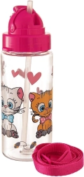 Mielas vaikiškas buteliukas iš patvaraus tritano, 490 ml talpos, su atverčiamu dangteliu, integruotu šiaudeliu ir reguliuojamu dirželiu. Idealiai tinka gerti namuose ir kelionėse. Be BPA, lengvas ir nesudužtantis, su silikoniniu sandarinimu nuo pratekėjimo ir lengvai plaunamas.