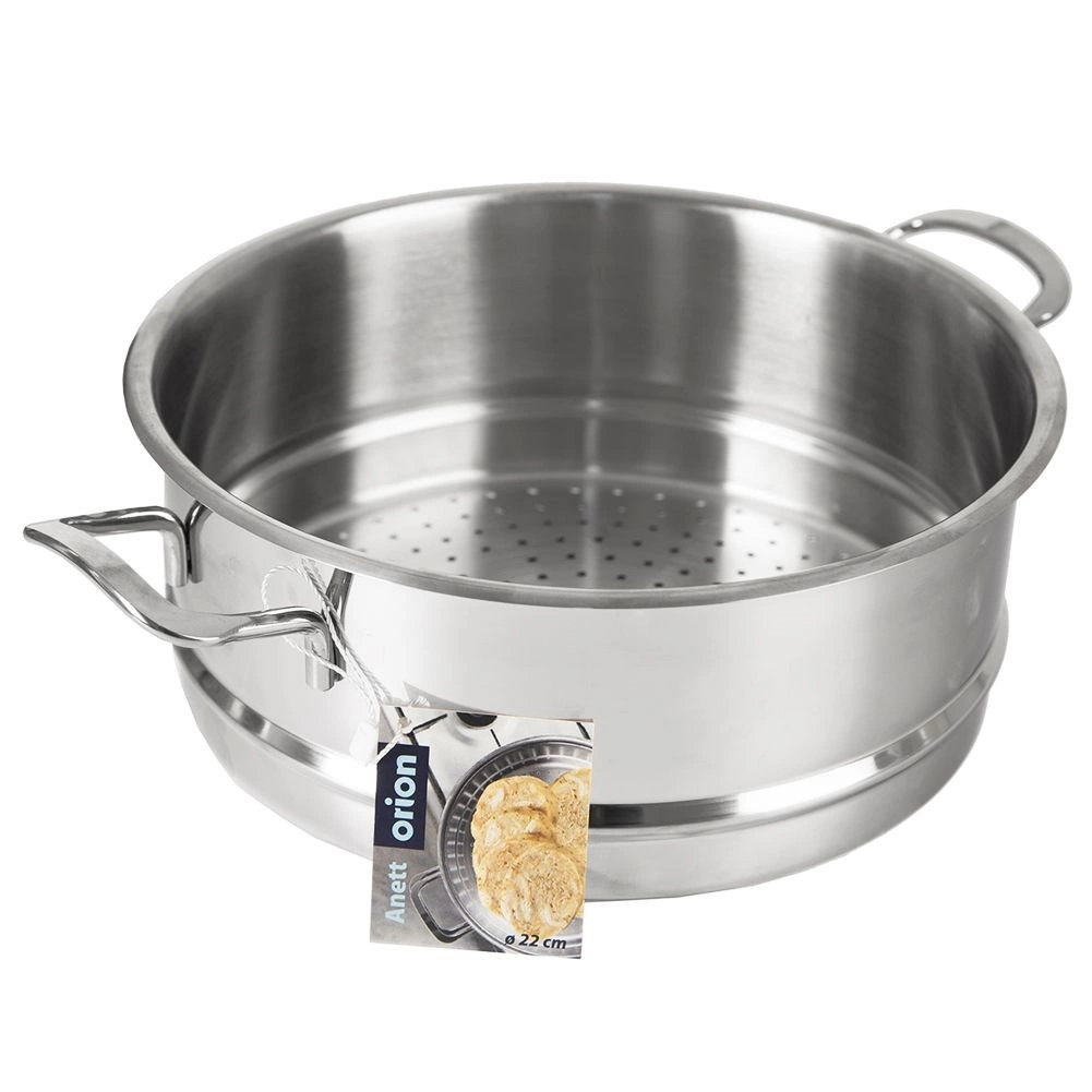Praktiškas nerūdijančio plieno garinimo įdėklas, kurio skersmuo 26 cm ir talpa 5,5 l, leis paruošti sveikus ir sultingus patiekalus – nuo daržovių ir žuvies iki garuose virtų koldūnų. Dėl tvirto nerūdijančio plieno, perforuoto dugno ir dviejų saugių rankenų juo patogu naudotis ir lengva valyti. Tinka plauti indaplovėje, puikiai tinka ant 24 cm skersmens puodų dėl profiliuoto išorinio žiedo, kuris neleidžia garams išeiti.