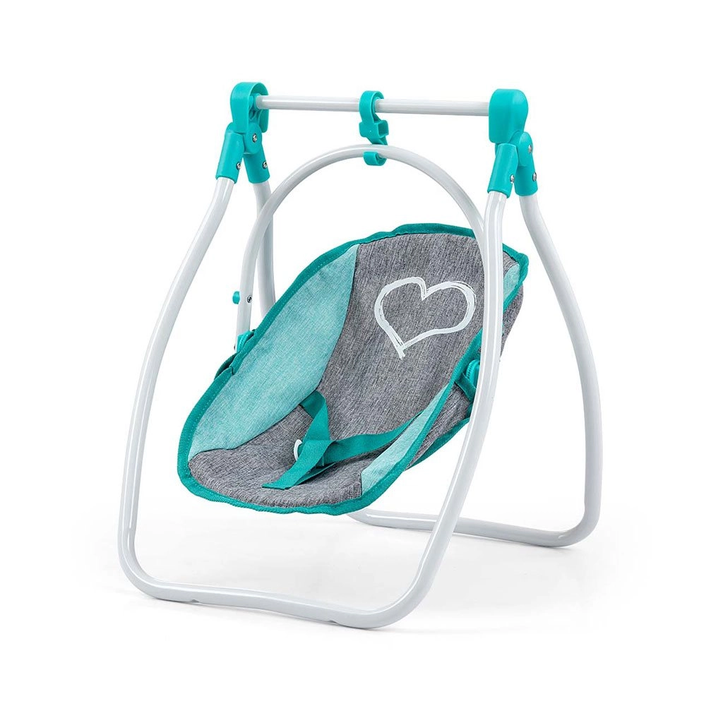 Saugios sūpynės su stabilia A formos konstrukcija ir patogia audinio sėdyne užtikrina daug smagumo prižiūrint lėlę.
