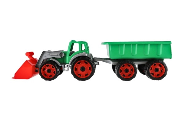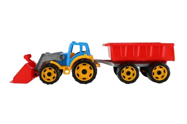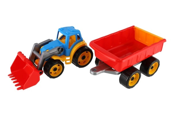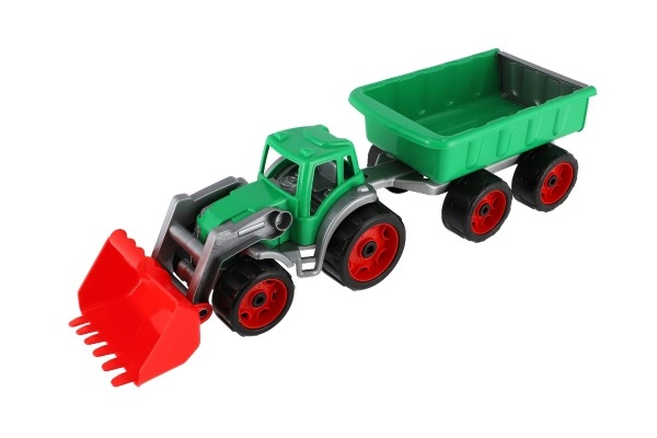 Šis traktorius su krautuvu ir priekaba pagamintas iš tvirto plastiko, kuris atlaiko vaikų žaidimus ir yra atsparus pažeidimams.