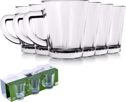 Stilingas šešių stiklinių espreso puodelių rinkinys, 70 ml talpos, pradžiugins visus kavos mėgėjus. Pagaminta iš patvaraus, skaidraus stiklo su patogia ąsele saugiam suėmimui. Storos sienelės, klasikinis dizainas ir paprasta priežiūra indaplovėje daro šias stiklines praktišku pasirinkimu namams ir viešajam maitinimui.