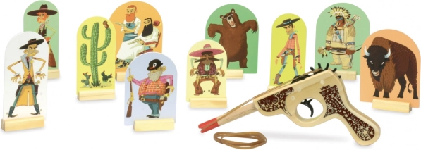 Pastatykite taikinius, užtempkite gumytę ir pakvieskite šeimą ar draugus į „dvikovą“ svetainėje. Kokybiškas medinis atlikimas užtikrina patvarumą ir ilgą žaislo tarnavimo laiką, o patrauklus vesterniškas dizainas sužavės mažuosius šaulelius.