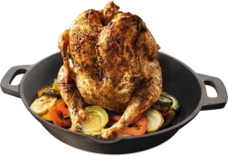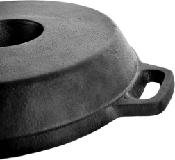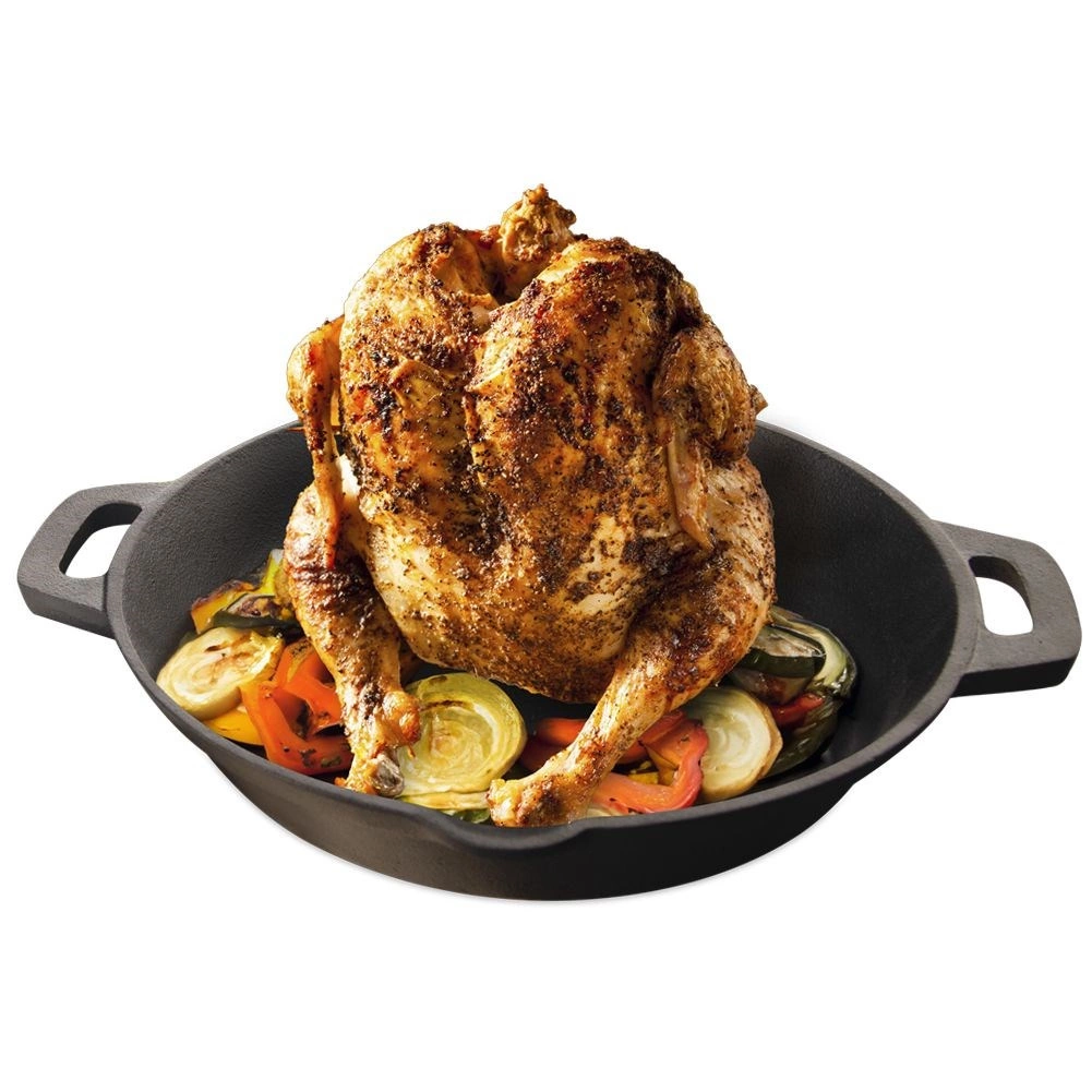 Ši masyvi ketaus keptuvė su integruotu stovu sukurta tobulai keptai vištienai – taip pat ir „vištiena ant alaus“ stiliumi. Centrinį smeigtuką galima pripildyti alumi ar vynu, kad gautumėte ypač sultingą ir aromatingą mėsą, o aplink patogiai telpa bulvės ar daržovės. Ketas užtikrina tolygų šilumos pasiskirstymą ir ilgai ją išlaiko, todėl maistas ilgiau išlieka šiltas.