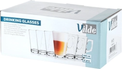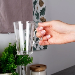 6 stiklinių su ąsele, 255 ml talpos, rinkinys derina laikui nepavaldų dizainą ir kasdienį praktiškumą. Skaidrus stiklas pabrėžia sluoksniuotą latę, arbatą ir naminius limonadus, o tvirta ąselė užtikrina saugų ir patogų suėmimą. Dėl storesnių sienelių stiklinės yra stabilios ir patvarios.