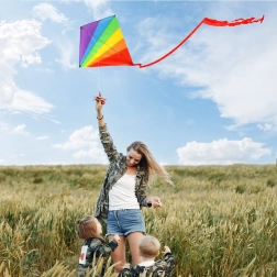 Šis vaivorykštinis aitvaras iš kokybiško poliesterio sužavės vaikus ir suaugusiuosius. Dėl lengvos konstrukcijos jis lengvai pakyla, o ilga uodega suteikia puikų stabilumą vėjyje. Tinka paplūdimiui, sodui ir plačioms pievoms.