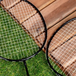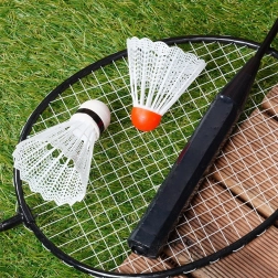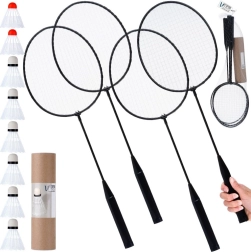 Šis šeimyniškas ir draugiškas badmintono rinkinys idealiai tinka dvejetų rungtynėms ir laisvam pasimušimui. Keturi lengvi, bet tvirti raketės rėmai su kokybišku stygavimu garantuoja tikslų smūgį ir lengvą manevravimą. Komplekte yra 8 plastikiniai kamuoliukai su dviem galvučių tipais skirtingam žaidimo pojūčiui ir geresniam matomumui.