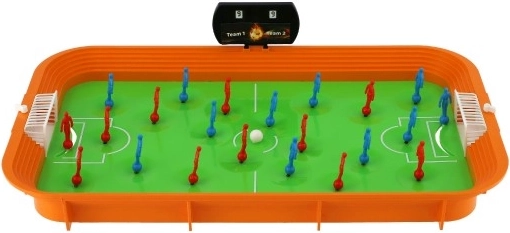 Patirkite tikrų rungtynių emocijas namų aplinkoje. Šis stalo futbolas naudoja spyruoklinį žaidėjų valdymą – pakanka palenkti figūrėlę reikiama kryptimi ir paleisti kamuoliuką į ataką. Vartininką galima aktyviai valdyti, o virš tribūnos įrengta rankinė rezultato skaičiuoklė, tad rezultatą visada turėsite po ranka.