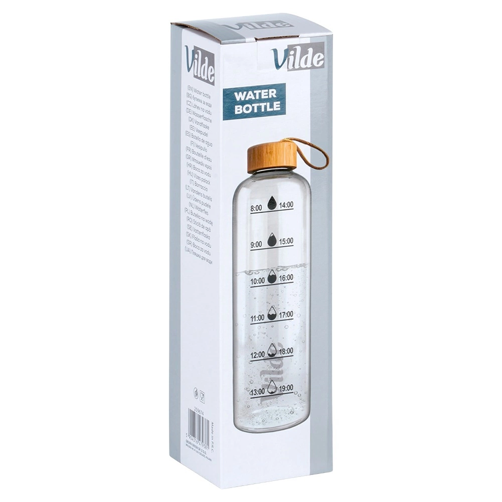 Stiklinis butelis VILDE sujungia švarų dizainą ir kasdieniam naudojimui naudingas funkcijas. Pagamintas iš borosilikatinio stiklo, kuris yra lengvas, patvarus ir atsparus temperatūrų skirtumams, tad mėgausitės vandeniu, arbata ar naminėmis limonadomis. Bambukinis dangtelis su silikoniniu sandarikliu patikimai sulaiko turinį viduje, o dėl kilpelės patogu nešti.