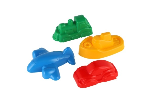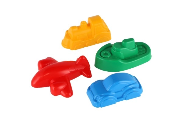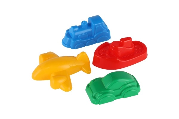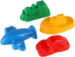 Šis 4 smėlio formelių rinkinys traukinio, laivo, lėktuvo ir automobilio formų pavers kiekvieną smėlio dėžę ar paplūdimį fantazijos kupinu pasauliu. Dėl kompaktiškų matmenų (apie 8–10 cm) vaikams patogu laikyti, o iš jų lengvai išsiima tobulai suformuoti smėlio pyragaičiai.