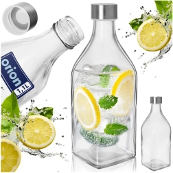 Elegantiškas stiklinis butelis, kurio talpa 1,1 l, su užsukamu metaliniu dangteliu ir silikoniniu sandarikliu maksimaliai sandarumui. Idealiai tinka vandeniui, limonadui, sultims ir naminiams gėrimams, puikiai pritaikytas kasdieniam naudojimui ir patiekimui ant stalo. Tinka plauti indaplovėje patogiam valymui.