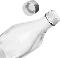 Stilingas skaidrus butelis iš kokybiško stiklo puikiai tinka gėrimams patiekti ir laikyti. Metalinis srieginis dangtelis ir silikoninis sandarinimas užtikrina saugų uždarymą be pratekėjimo ir ilgiau saugo gėrimo šviežumą. Švarios linijos ir kvadratinis pagrindas garantuoja stabilumą ir patogų pylimą.