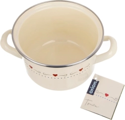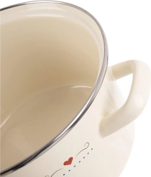 Stilingas retro dizaino puodas iš kokybiško emaliuoto plieno kreminės spalvos su santūriu širdžių motyvu. Praktinė 1,4 l talpa idealiai tinka sriuboms, padažams, garnyrams ir kasdieniam gaminimui. Emalis yra atsparus, lengvai valomas ir saugus sveikatai – tinkamas net alergiškiems žmonėms.