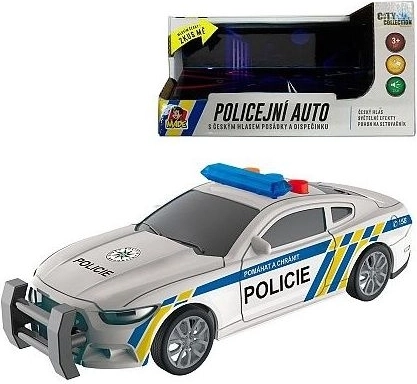 Smagus 17 cm ilgio policijos automobilis su inerciniu mechanizmu pradžiugins kiekvieną mažąjį pareigūną. Jis siūlo šviesos efektus, garso funkcijas ir įgulos bei dispečerio balsines frazes čekų kalba. Į pakuotę įtrauktos baterijos, tinka vaikams nuo 3 metų.