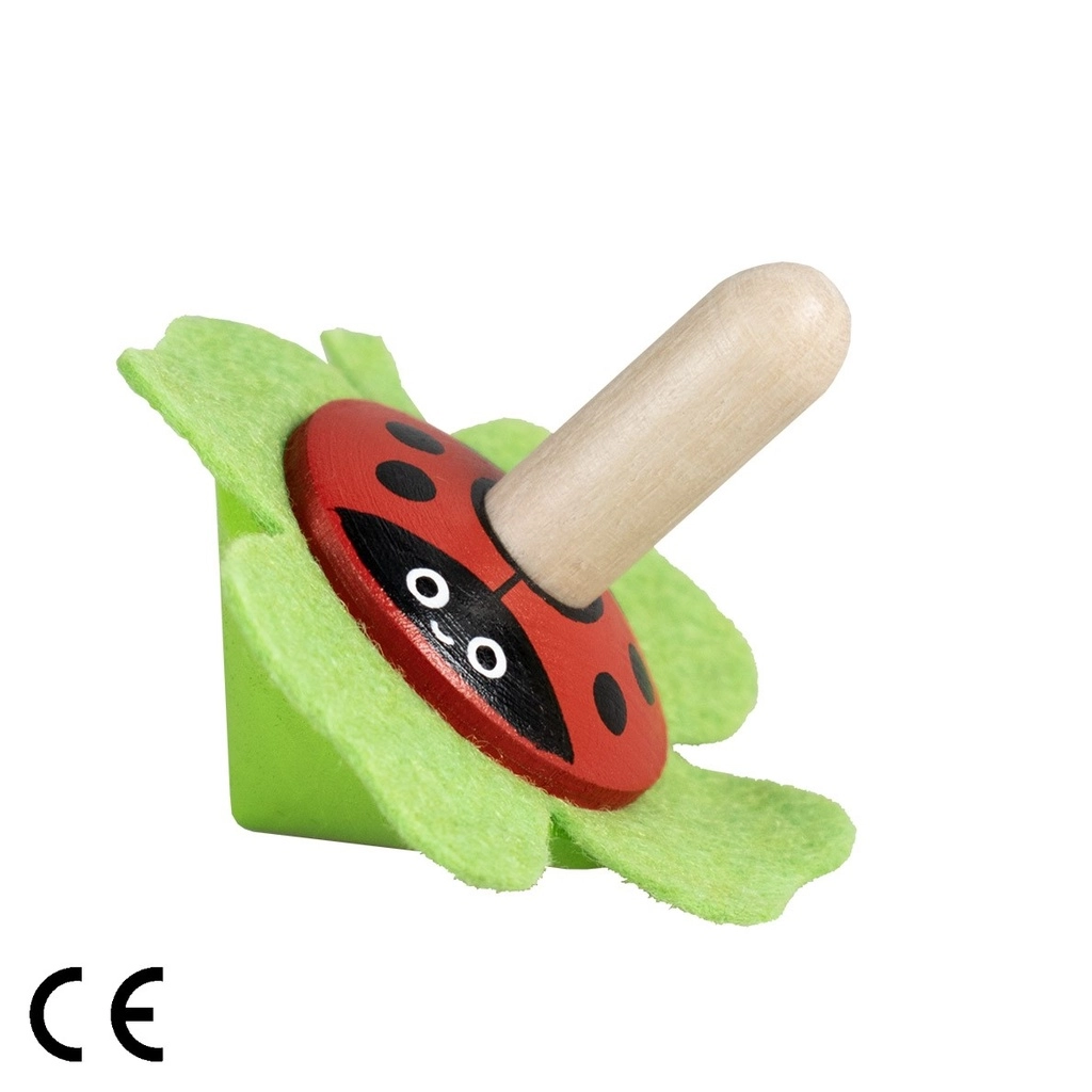 Įsukite pramogą su mediniu vilkeliu, papuoštu boruže! Dėl veltinio rašto ant keturlapio jis ne tik mielas, bet ir stabiliai sukasi. Vaikai žaisdami lavina tikslumą, kantrybę ir koordinaciją.