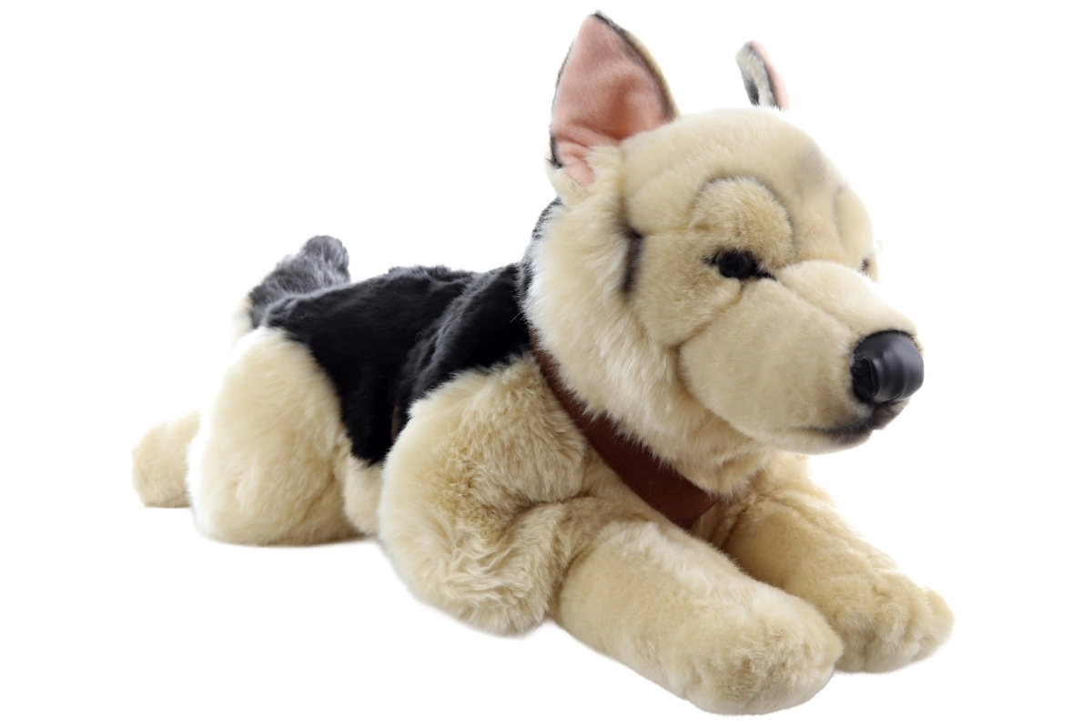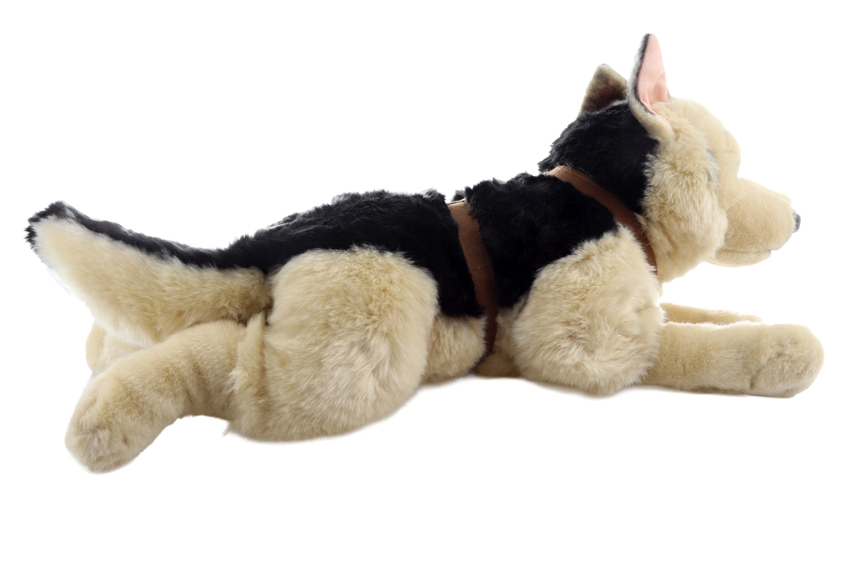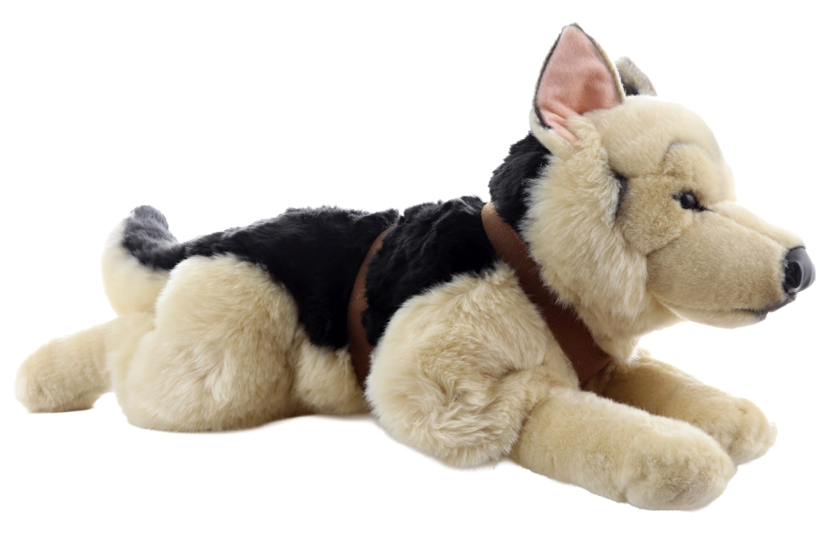 Šis elegantiškas plišinis vokiečių aviganis su pakinktais yra puikus draugas kasdieniams žaidimams ir jaukiam glaudimui. Jo tikroviška išvaizda su sodriu rusvai juodu kailiu ir ryškiomis ausimis atrodo įtikinamai ir sužavės tiek vaikus, tiek suaugusiuosius. Dėl maloniai minkšto paviršiaus jį patogu laikyti, jis suteikia jaukumo ir puošia vaikų kambarį.