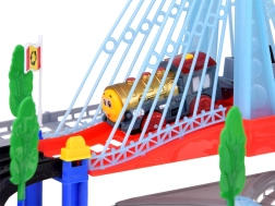 Ikoninis kabamasis tiltas pravažiuojant nušvinta spalvotomis LED švieselėmis ir paverčia trasą patrauklia atrakcija, skatinančia vaikus vėl ir vėl statyti bei važiuoti.