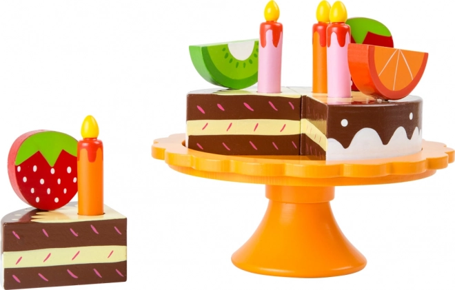 Small Foot medinis gimtadienio vaisių tortas puikiai tinka kiekvienai vaikų šventei. Interaktyvus žaislas leidžia vaikams žaisti su atskiromis vaisių dalimis, kurios pritvirtintos pagaliukais ir gali būti lengvai perkeliamos. Žvakutės ir dekoracijos suteikia tortui autentišką išvaizdą, o vaikai gali suvaidinti tikrą gimtadienio vakarėlį.
