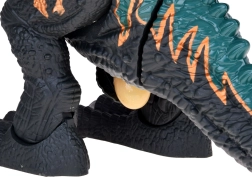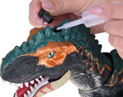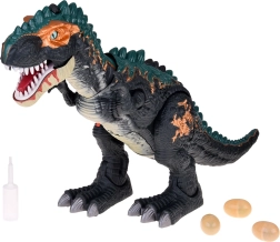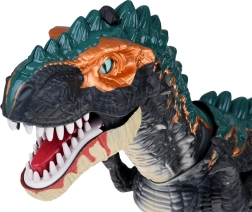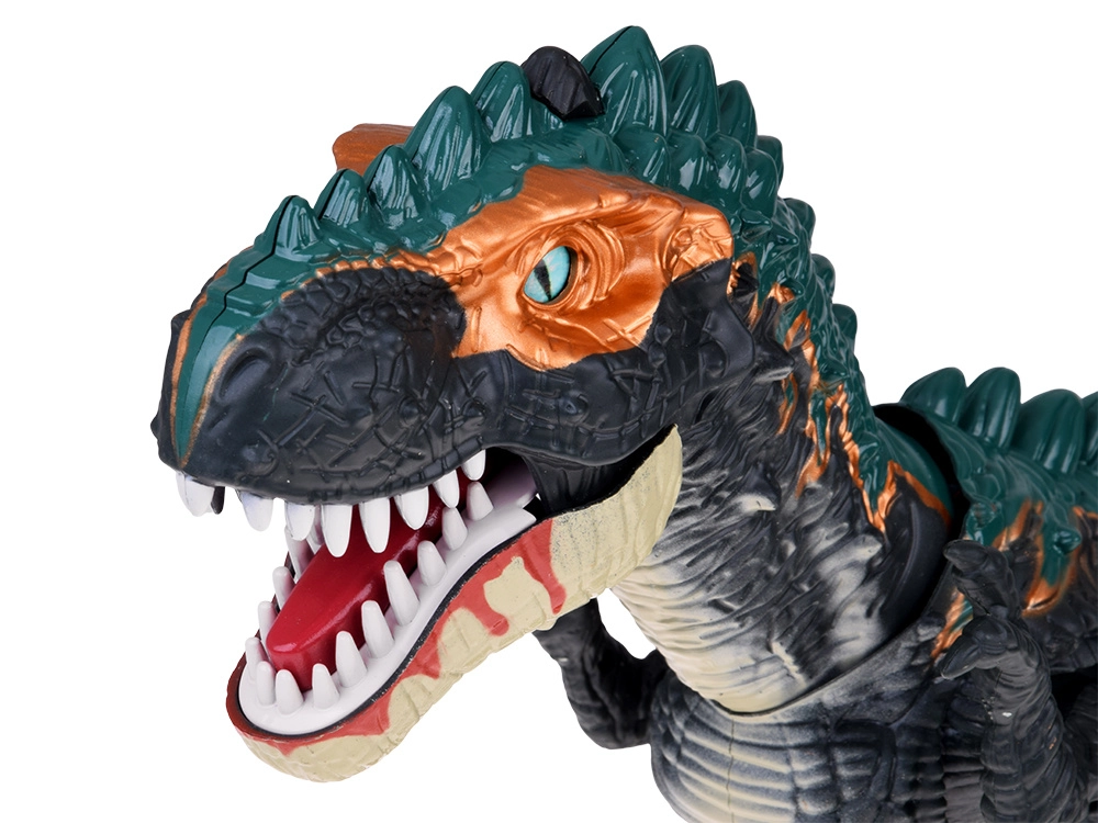 Didelis garsiausio dinozauro T‑Rexo modelis sužavi detaliu atlikimu: ryškūs dantys, realistiškos akys, odą primenanti tekstūra, nagai ir nugaros keteros. Įjungus T‑Rexas žingsniuoja į priekį, judina galvą, priekines letenas ir uodegą bei skleidžia įspūdingą riaumojimą.