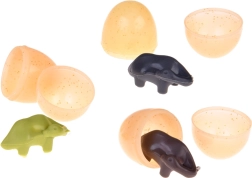 - Deda kiaušinius: 3 kiaušiniai su mažais dinozauriukais viduje