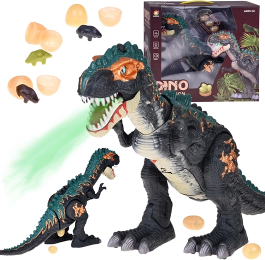 Atraskite realistišką pramogą su interaktyviu T‑Rex dinozauru, kuris vaikšto, riaumoja, šviečia ir leidžia garus iš nasrų. Didžiausia atrakcija – kiaušinių dėjimo funkcija: rinkinyje yra 3 atsidarantys kiaušiniai su mielais jaunikliais. Kokybiškas atlikimas, ryškūs šviesos ir garso efektai bei judančios dalys užtikrins ilgas žaidimo valandas.