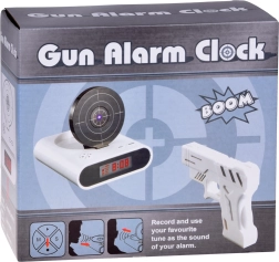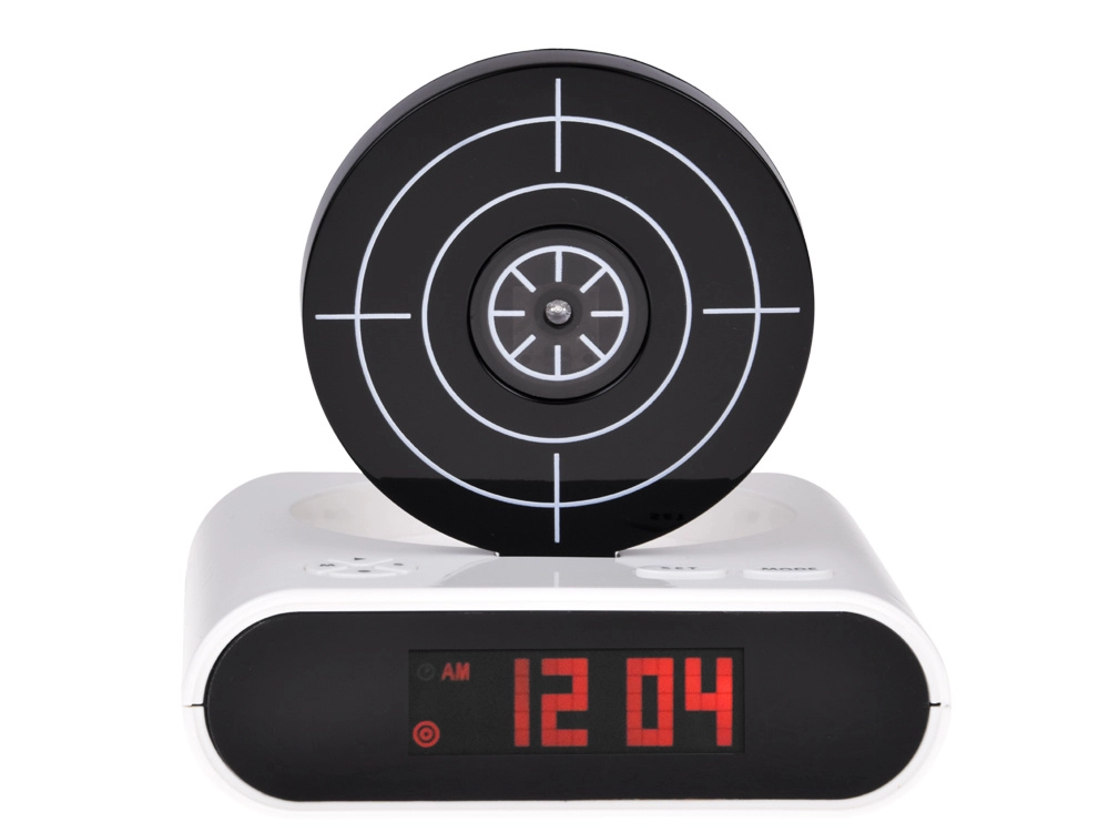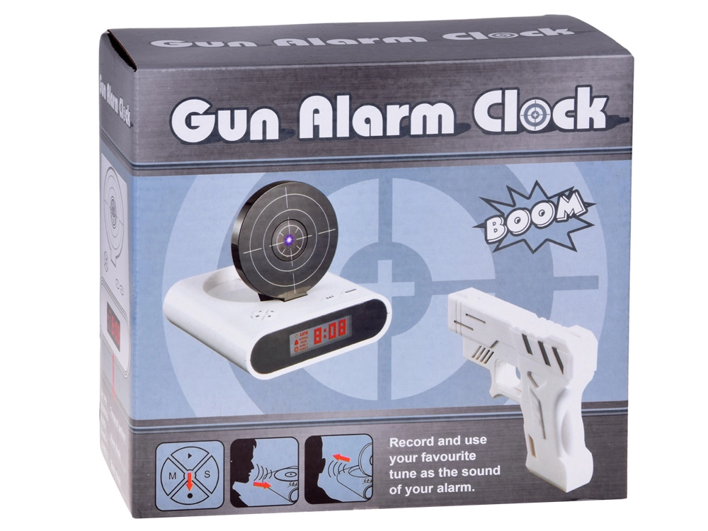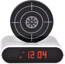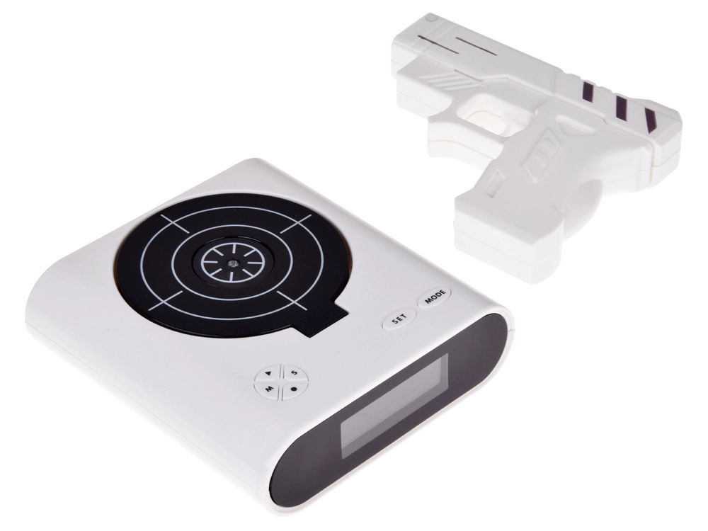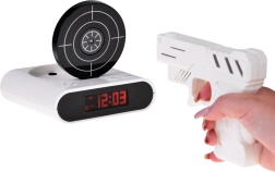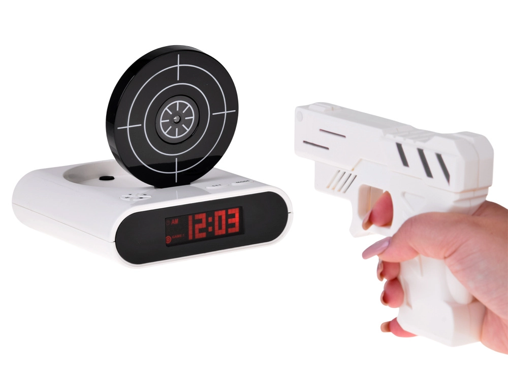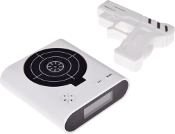 Pagerinkite rytinį kėlimąsi su originaliu žadintuvu, kurį nutildysite nusitaikę į taikinį ir paspaudę gaiduką. Šis smagus žadintuvas siūlo šaudymą į taikinį su infraraudonųjų spindulių pistoletu, galimybę įrašyti savo žadintuvo garsą ir 2 žaidimo režimus. Dėl aiškaus LCD ekrano ir maitinimo baterijomis arba per micro USB jis puikiai tinka miegamajam, biurui ir kaip netradicinė dovana.