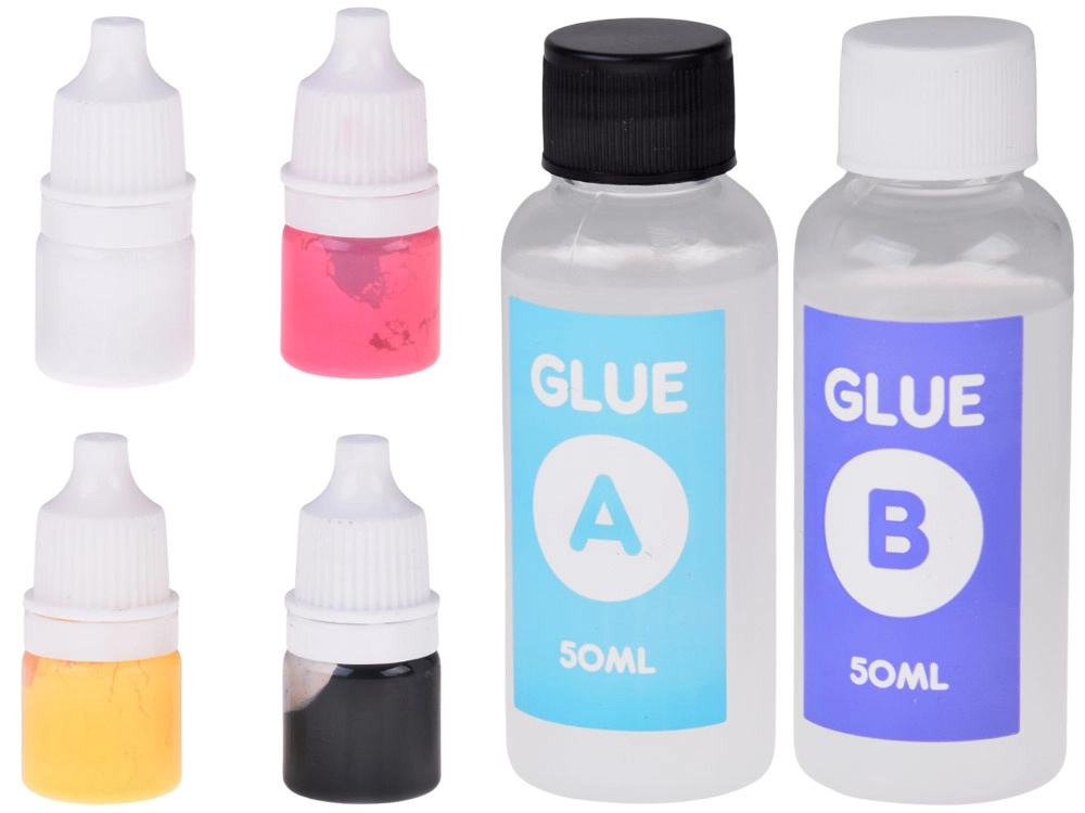 - Forma 4 gleivėms, maišymo mentelė, plastikinis peiliukas, 2× klijai (A+B), matuoklis, 4× dažiklis, minkšti dekoratyviniai rutuliukai, apsauginės pirštinės, 4× žvaigždutė, 4× permatomas indelis, 4× dekoratyvinis maišelis, 4× grandinėlė raktų pakabukui, padėkliukas