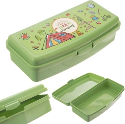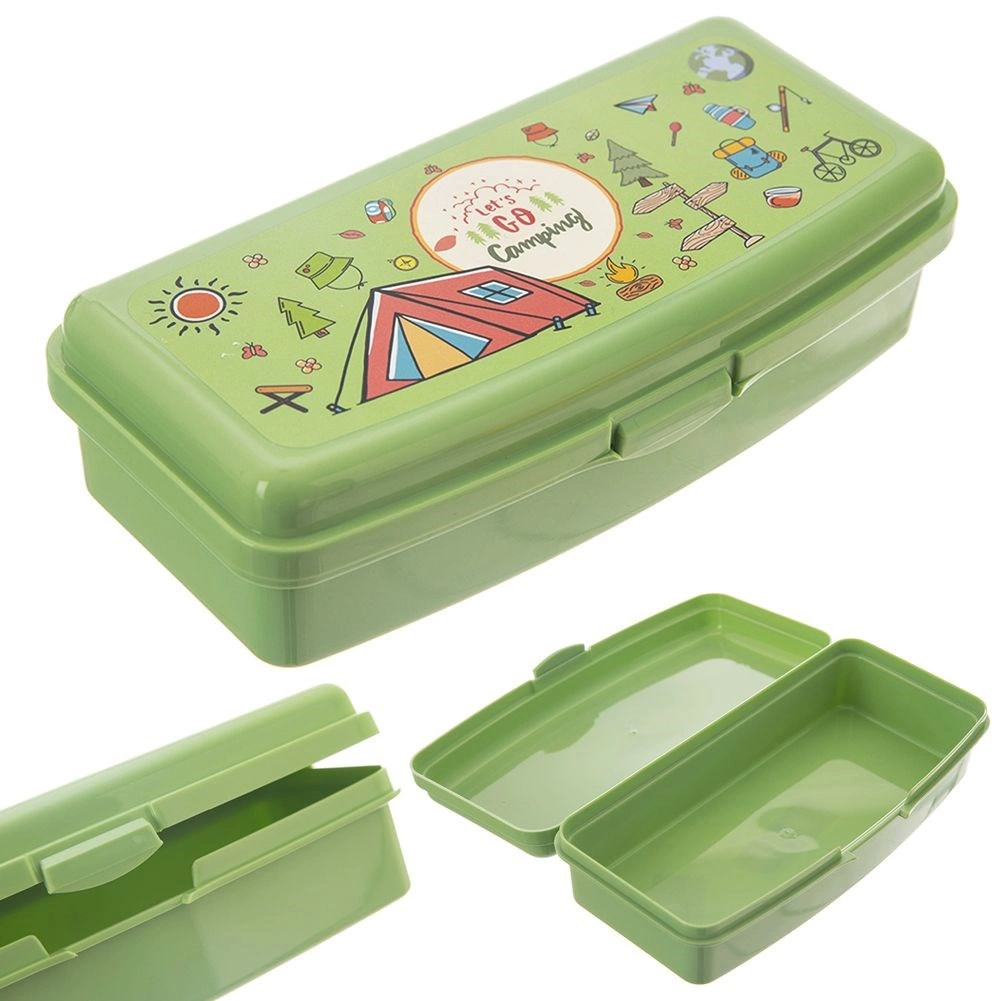 Praktiška 500 ml talpos žalia pietų dėžutė idealiai tinka sumuštiniams, užkandžiams ir mažiems skanėstams. Ji turi kompaktiškus matmenis 21 × 9,5 × 5,5 cm, tvirtą konstrukciją iš kokybiško plastiko ir patikimą užsegimą su spaustuku, kuris padeda išlaikyti šviežumą. Dėžutę puošia patrauklus stovyklavimo motyvas, todėl vaikai lengvai atpažins savąją.