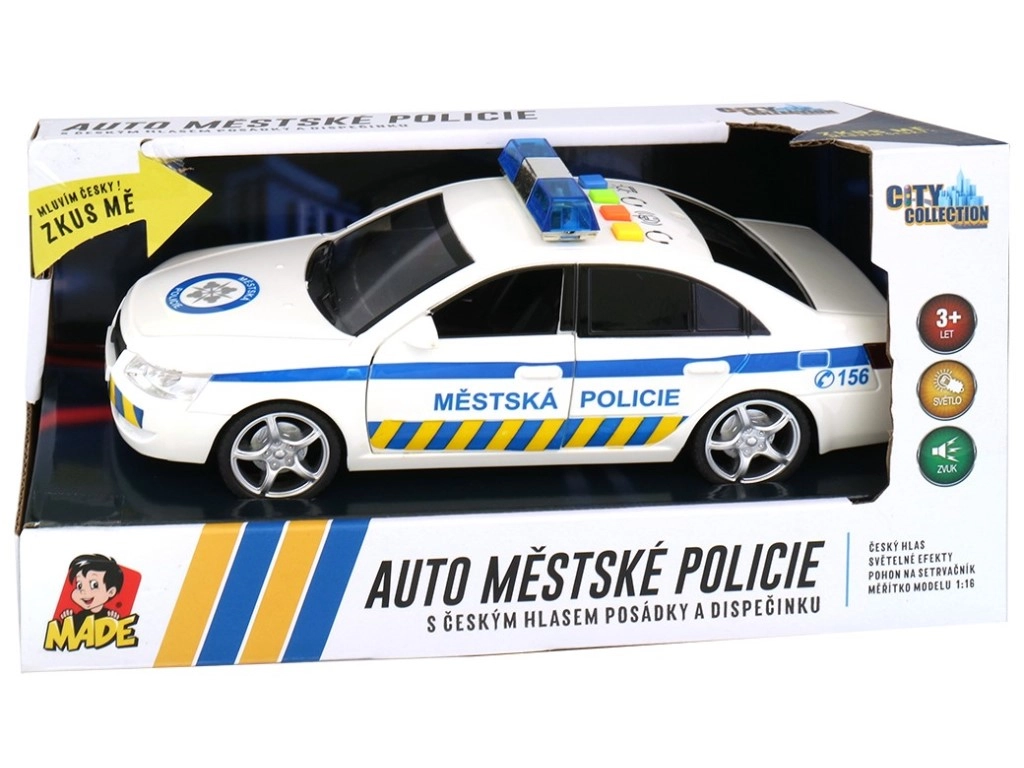 Realistiškas policijos automobilis čekų dizaine suteikia vaikams veiksmo ir nuotykių. Jame yra čekų įgulos ir dispečerio balso pranešimai, veikiantis švyturėlis ir garsiniai efektai. Ideali dovana mažiesiems policininkams nuo 3 metų.