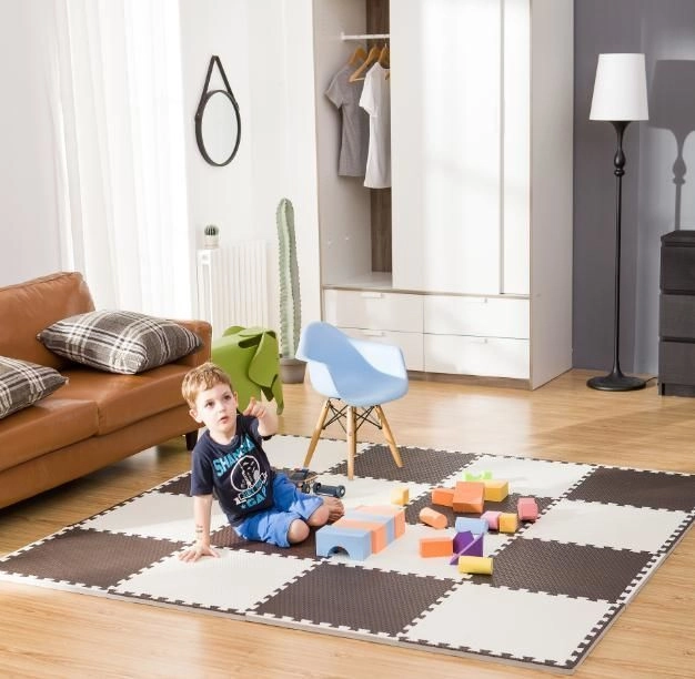 Modulinės dalys 60 × 60 cm su krašteliais gali būti laisvai jungiamos to paties modelio ribose, kad sukurtumėte didesnį plotą ar erdvines formas (pvz., kubą), kurios lavina vaiko vaizduotę ir motoriką. Neutralios spalvos tinka bet kuriam interjerui, o dėlionės kraštelių forma leidžia pritaikyti kilimėlio formą ir siauresnėse patalpose.