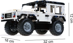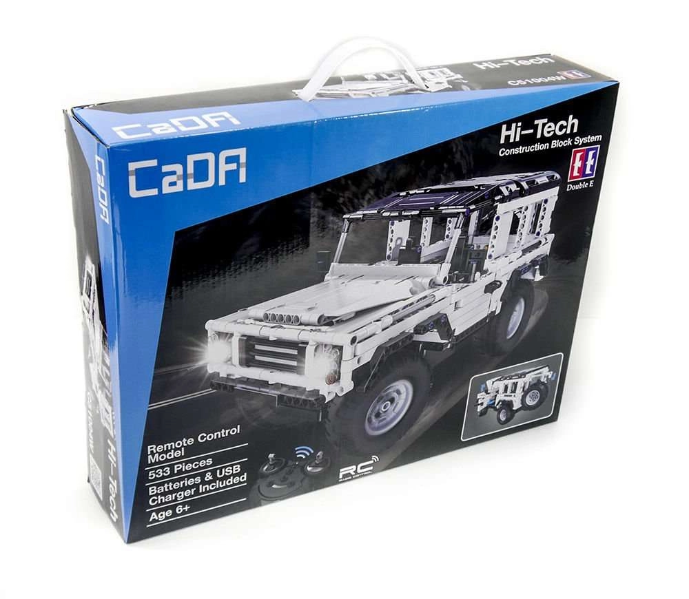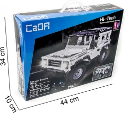 CaDA Hi‑Tech konstruktorius – puikus pasirinkimas mažiems ir dideliems kūrėjams, mėgstantiems iššūkius. Baltas visureigis, įkvėptas Jeep stiliaus, siūlo tvirtą konstrukciją, atidaromus elementus ir sklandų valdymą per 2,4 GHz. Sumontavus modelį, jis įsibėgėja iki 6,3 km/val., o patikimas radijo ryšys leidžia mėgautis sklandžiu važiavimu pirmyn, atgal ir posūkiais.
